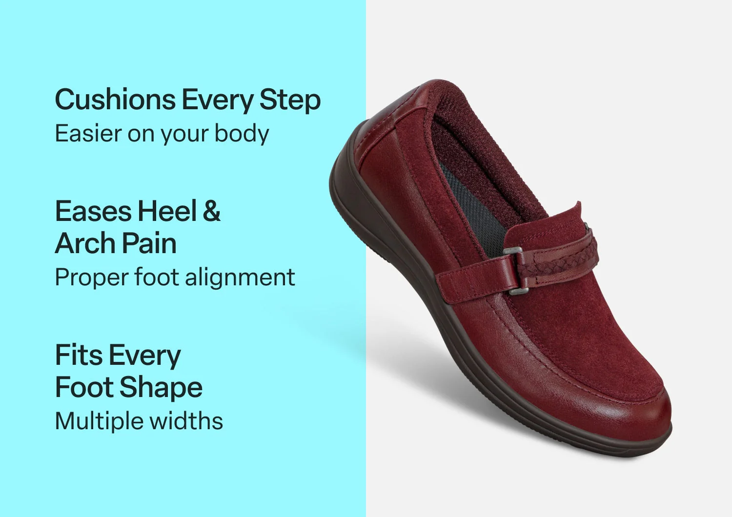 With the supple leather Chelsea, you'll never sacrifice foot comfort and health to dress well. The adjustable strap opens on either side and the tongue flips up, to make getting in easy. Therapeutic, adjustable support, a padded interior and roomy design prevent foot pressure, while advanced cushioning and walking ergonomics align, stabilize, and soften every step.