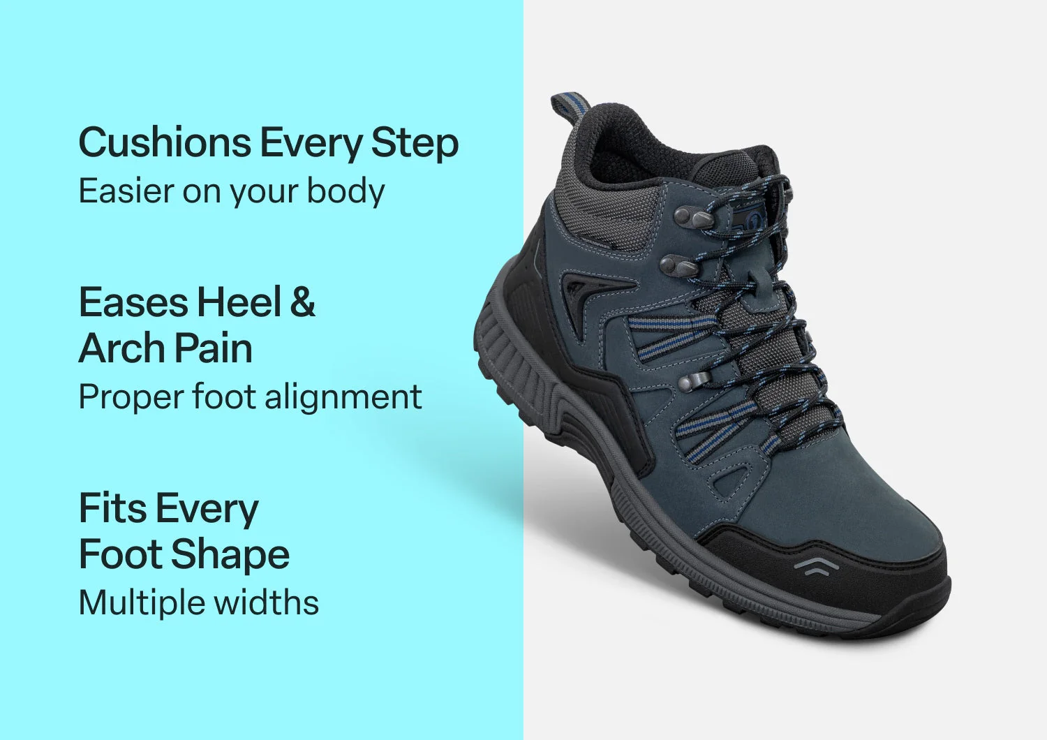 Go the extra mile in ultimate comfort with the all-terrain, all-weather capabilities of this high-performance mountain boot, featuring premium waterproof leather and moisture-venting membrane. Adjustable Ortho-Cushion Support, a wide toe box, extra depth and a soft interior keep sensitive feet and conditions free of pressure and irritation for extended trekking.