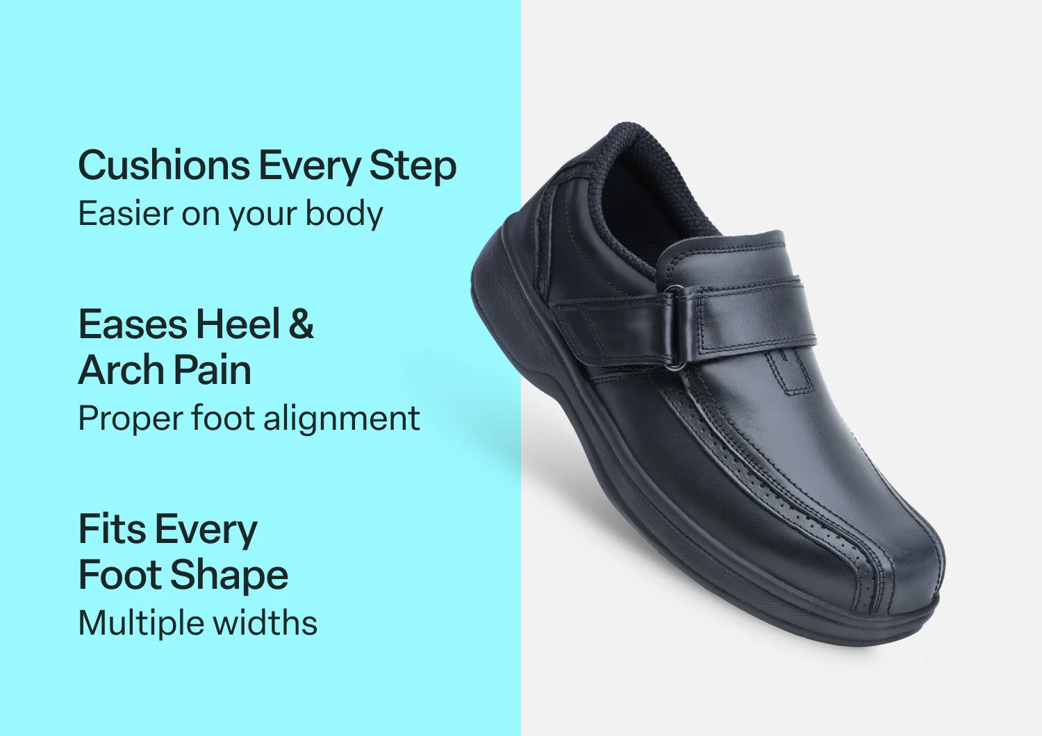 This classic leather pull-strap oxford is ready for every occasion and puts your healthy comfort front-and-center. Enjoy pain-free time on your feet with the adjustable, anatomical support of the Ortho-Cushion⢠System. A single strap closure makes these easy to get on and off, while a roomy, adjustable fit, and a smooth, padded interior protect and enhance your mobility.