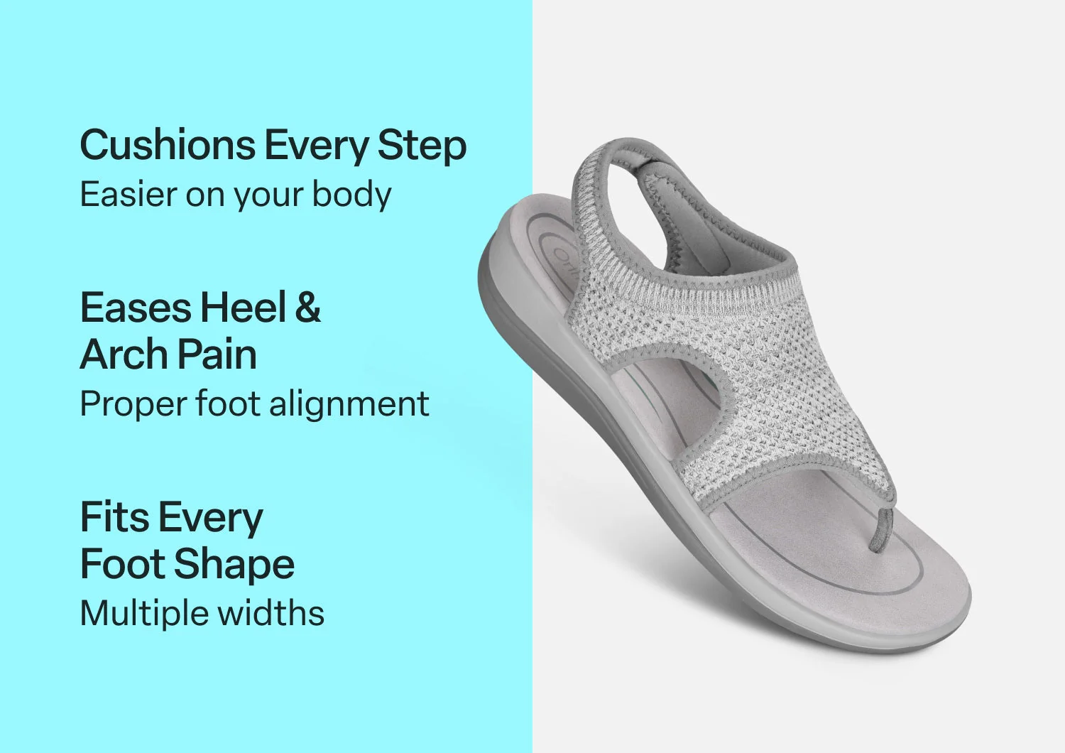 This women's sandal gently hugs the curves of your foot in stretchable, breathable fabric. The toe-post is thin, soft and flat for irritation-free comfort and the padded heel strap makes it easy to slide on and enjoy a flip-flip alternative that won't slip off. How cool is that? Our Ortho-Cushion⢠System is the ideal platform to keep your busy summer days blissfully pain-free.