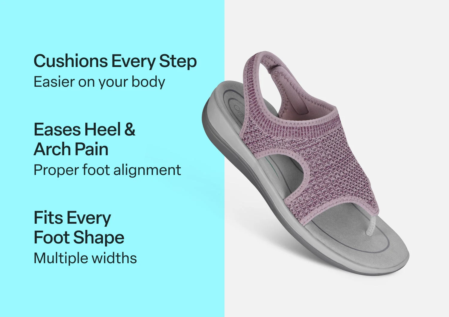 This women's sandal gently hugs the curves of your foot in stretchable, breathable fabric. The toe-post is thin, soft and flat for irritation-free comfort and the padded heel strap makes it easy to slide on and enjoy a flip-flip alternative that won't slip off. How cool is that? Our Ortho-Cushion⢠System is the ideal platform to keep your busy summer days blissfully pain-free.