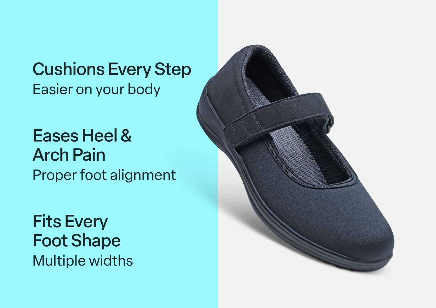 Featuring an all-stretch upper, this popular Mary Jane gently forms to every contour of sensitive feet and can be ideal in recovery after surgery. An adjustable inset strap opens completely for step-in ease, while the smooth, padded interior prevents irritations. Stay comfortably active throughout your day with soft-walking, adjustable Ortho-Cushion⢠System support.